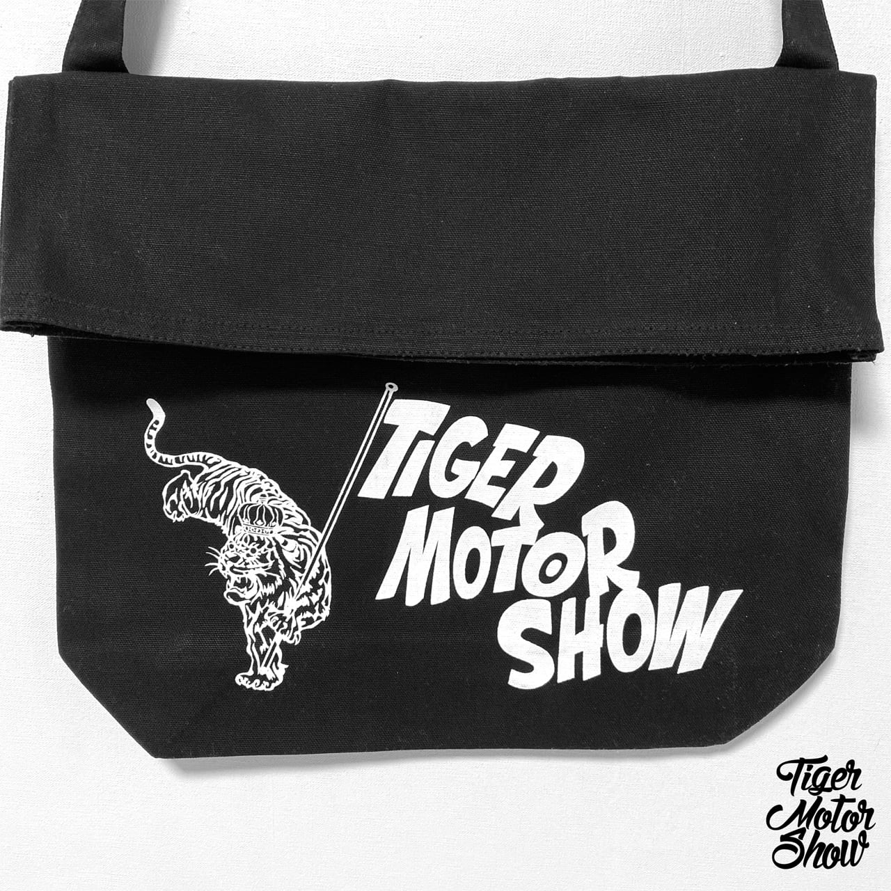 王冠をかぶった虎のデザインが目を引くショルダーバッグスタイルのトートバッグ。